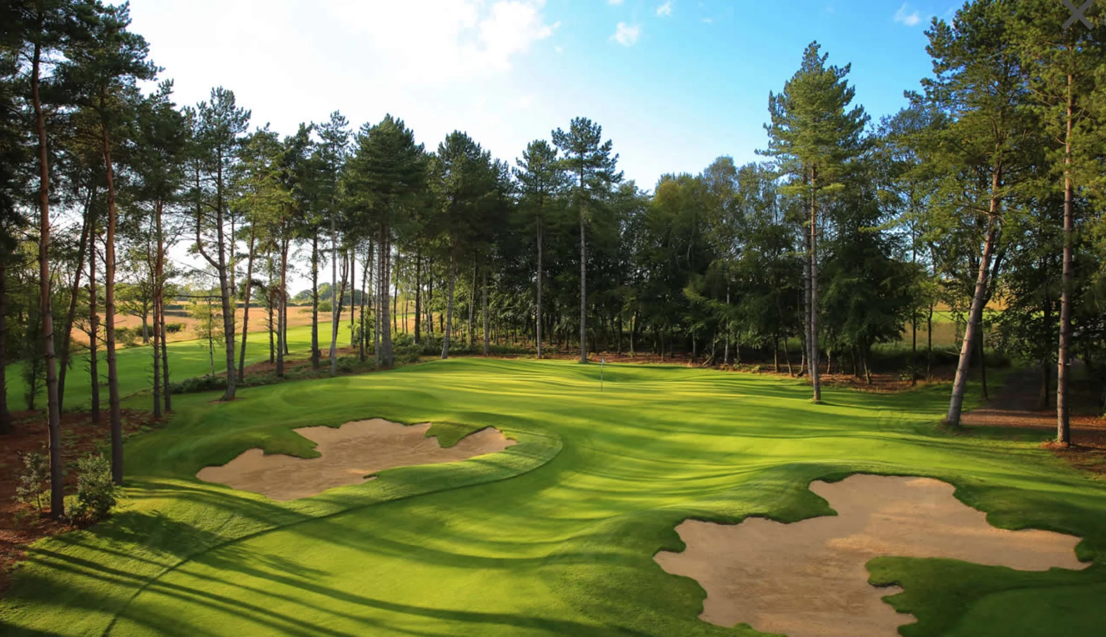 Widely regarded as one of the best new courses in the UK, Centurion Club’s 18 hole course has been open for play since 2013. The private member’s club is located on the west side of St Albans and very therefore easily accessible for those travelling to play this golf event. The course begins by winding through tall pines on holes 1 to 5, before moving to parkland style holes in the middle of the round, which have been carefully shaped to make the most of the natural terrain, with elevated tees set up to take advantage of views across beautiful countryside. From the 14th, you’ll return to the woodland before a challenging par 5 18th hole which finishes next to the clubhouse with the green surrounded by water! Of particular note, is the all year round quality of the undulating greens.